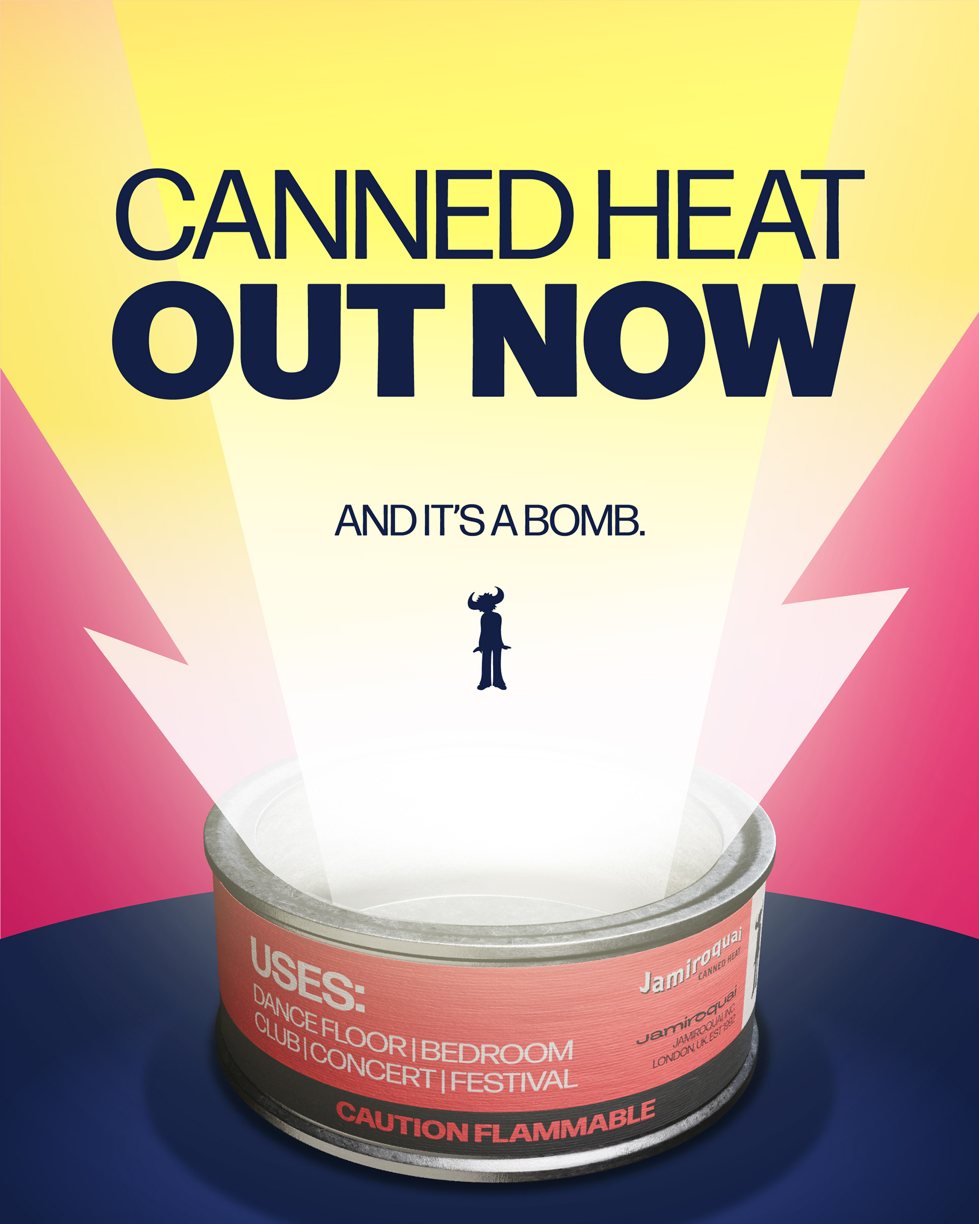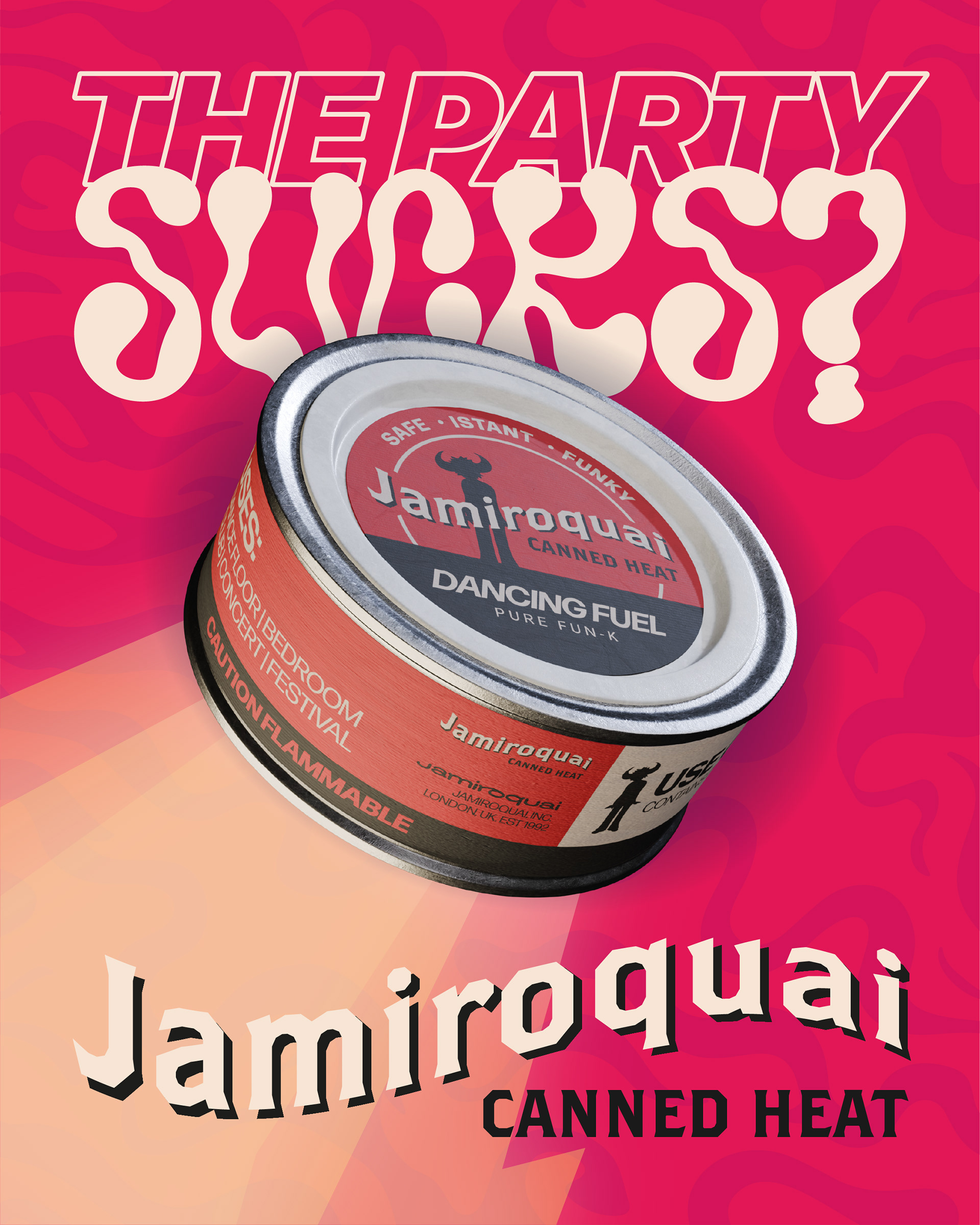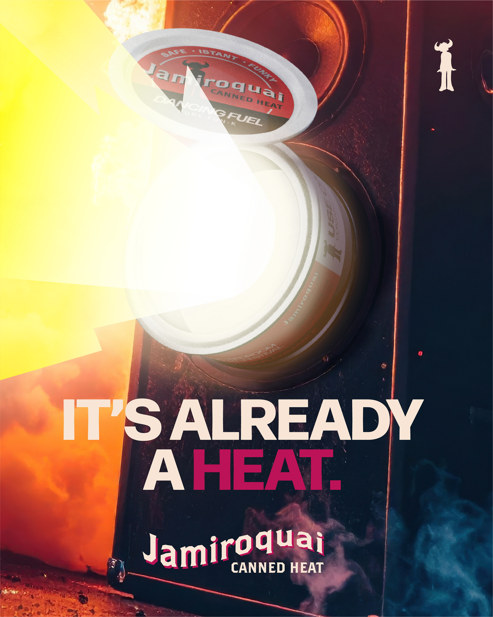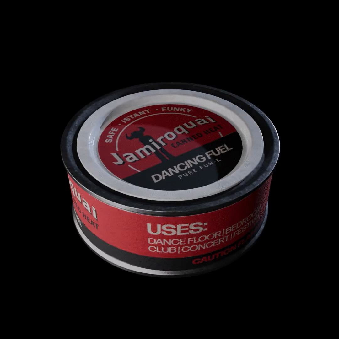 Starting from the title “Canned Heat”, the concept traces back to the origin of this slang term, the historic Sterno brand of canned fuel, to create a Jamiroquai‑branded version of the product: a “dancing fuel” ready to ignite the dance floor.